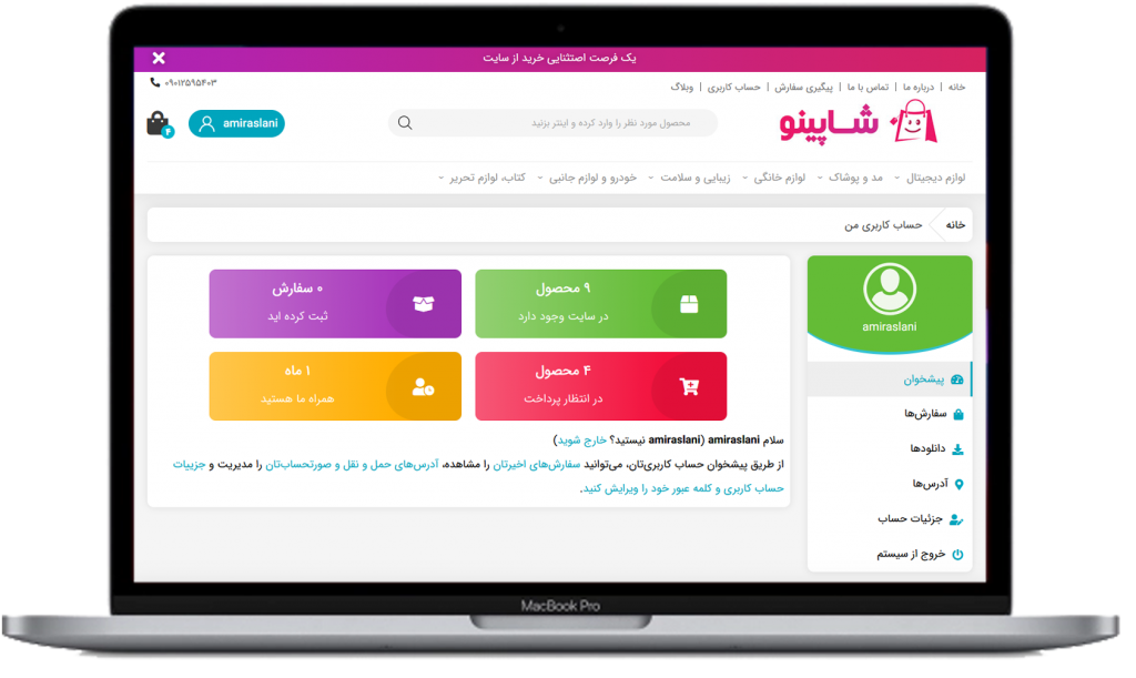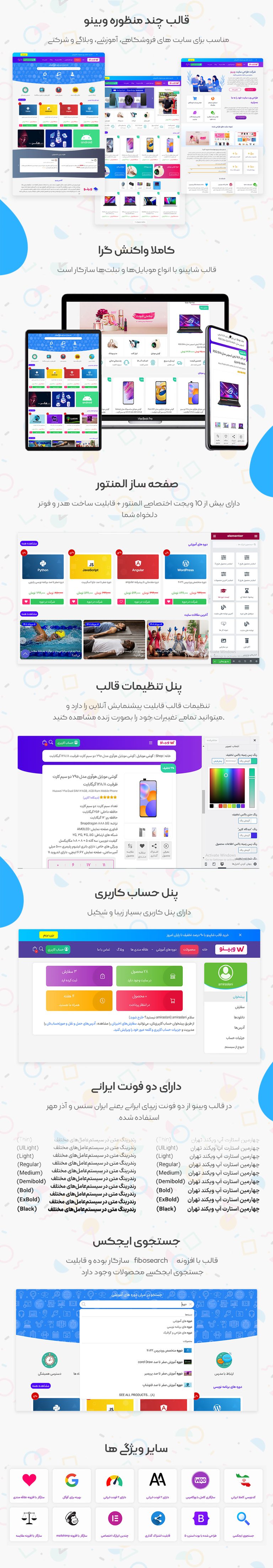 شاپینو یک قالب وردپرس تازه تاسیس در حوزه فروشگاهی می باشد. شاپینو به عبارتی یک فروشگاه ساز کامل است که شما می توانید به وسیله آن یک فروشگاه اینترنتی آنلاین در حوزه های مختلفی از جمله: دیجیتال، مد و پوشاک و…راه اندازی نمائید. شاپینو طراحی کاملا ایرانی پسند دارد به گونه ای که کوچک ترین جزئیات را هم در نظر گرفته است و تمام تلاش خود را کرده تا بتواند یک قالب حرفه ای و سبک را در اختیار کاربران خود قرار دهد تا شما بتوانید صاحب یک وب سایت آنلاین پرقدرت باشید.