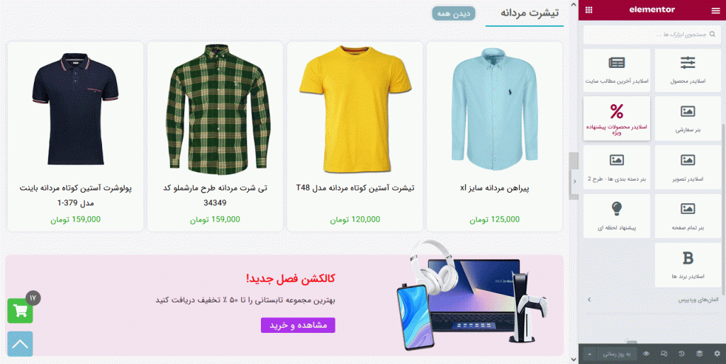 قالب شاپینو با صفحهساز المنتور ادغام شده. پس شما میتوانید هر نوع طراحی که مدنظر دارید را بدون نیاز به ۱ خط برنامهنویسی روی صفحات سایت خود اجرا کنید.